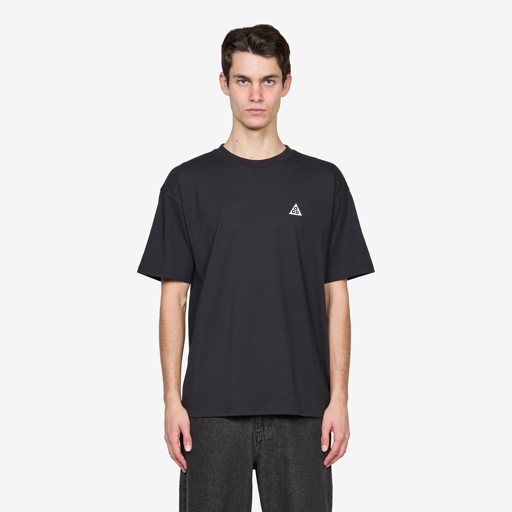 ACG Dri-FIT Max90 T-Shirt in Black from Nike. Relaxed fit t-shirt with a ribbed crew neckline. Crafted from a heavyweight moisture-wicking cotton blend and finished with embroidered branding at the chest and printed branding on the back.