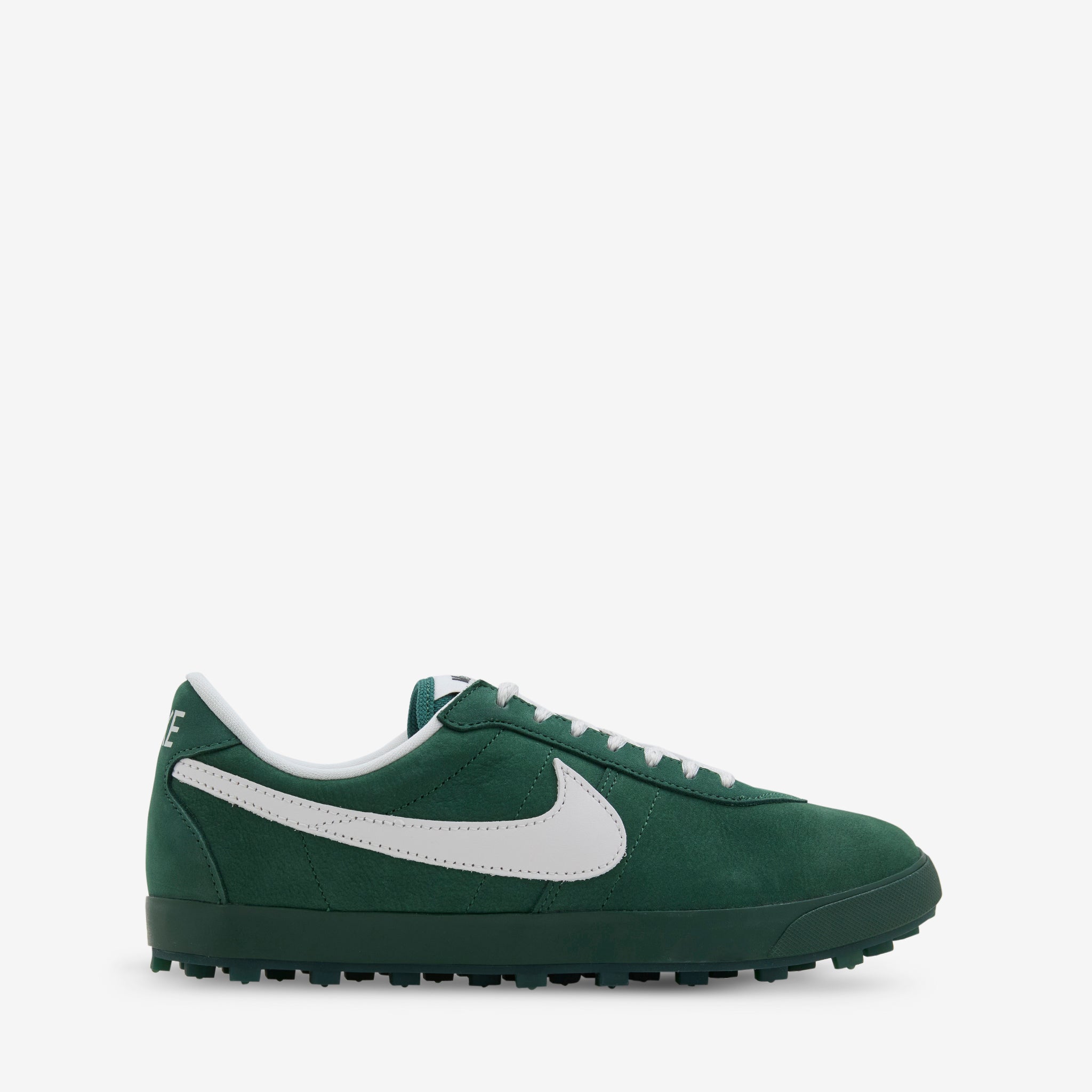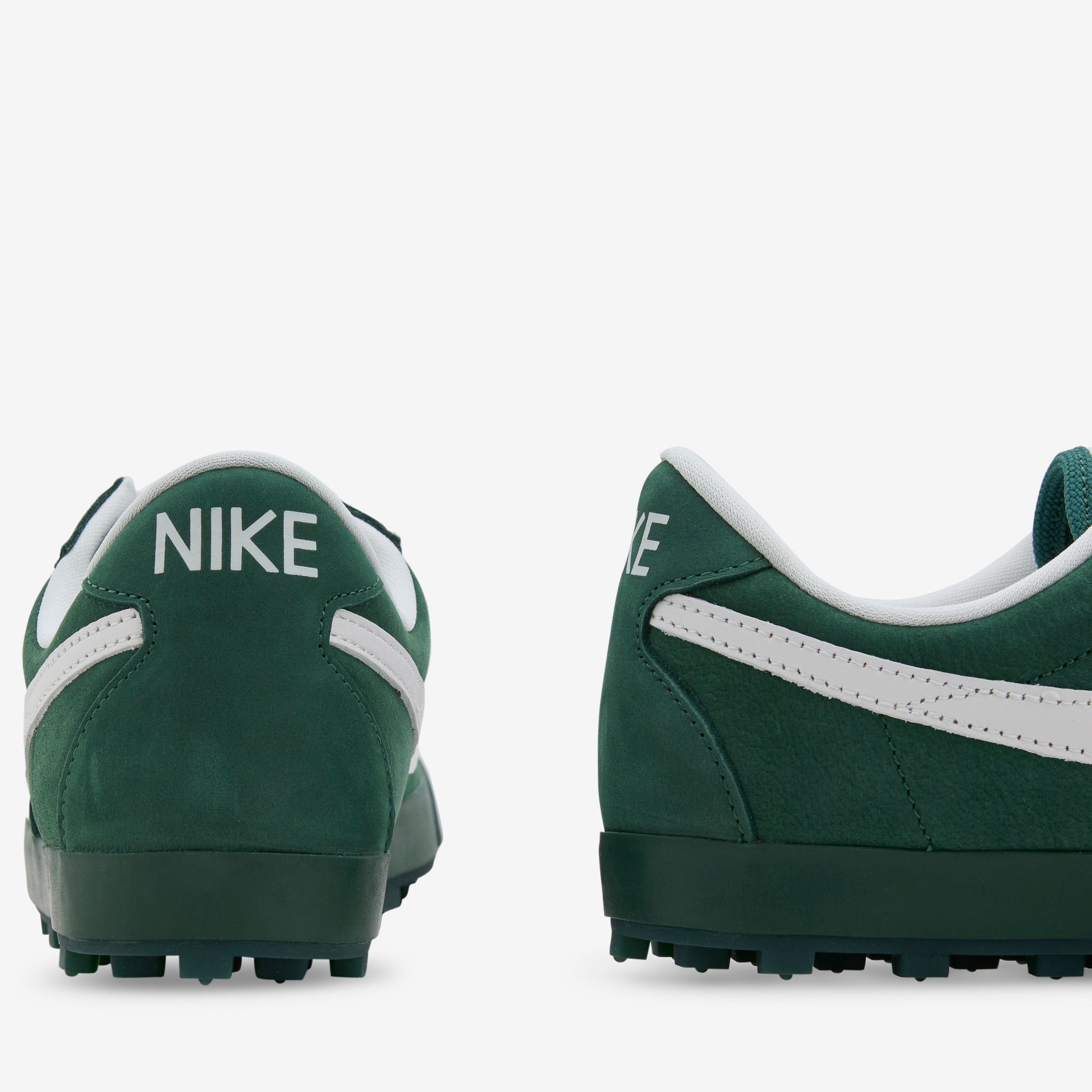 Men's Astrograbber in Fir, Phantom, Sail and Black from Nike. This 1974 silhouette designed to better grip astro-turf returns with a premium leather upper and contrast Swoosh overlays that soften and gain vintage character with wear. Air Zoom cushioning provides off-the-ground support. Finished with a heritage-style rubber waffle outsole for durable traction.
