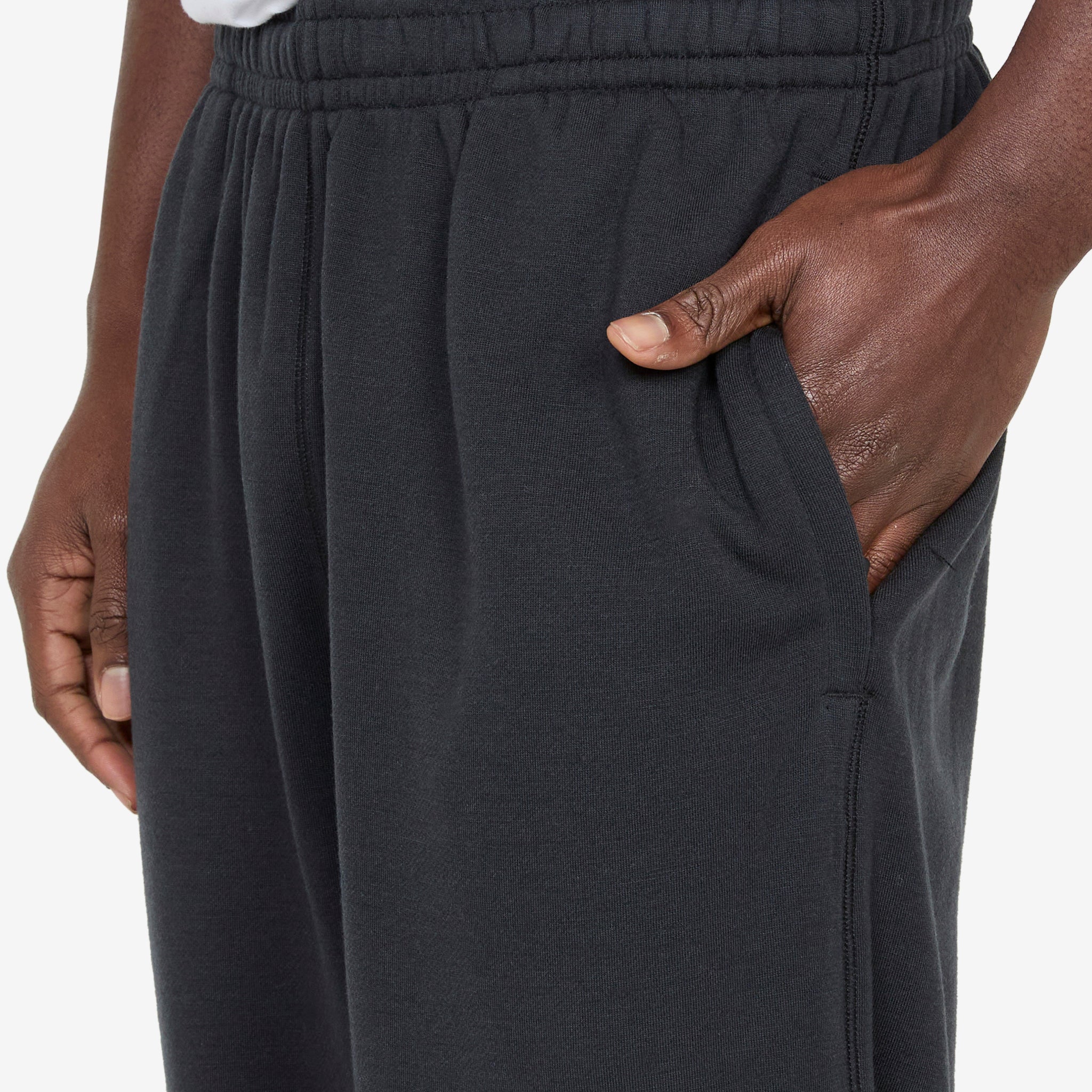 Nike Wool Classics Fleece Pant in Black from Nike. Loose fit in heavyweight French terry knit from a soft cotton-wool blend. Designed with a roomy cut through the seat, thighs, and legs for ease of movement. Finished with elastic waistband and cuffs.