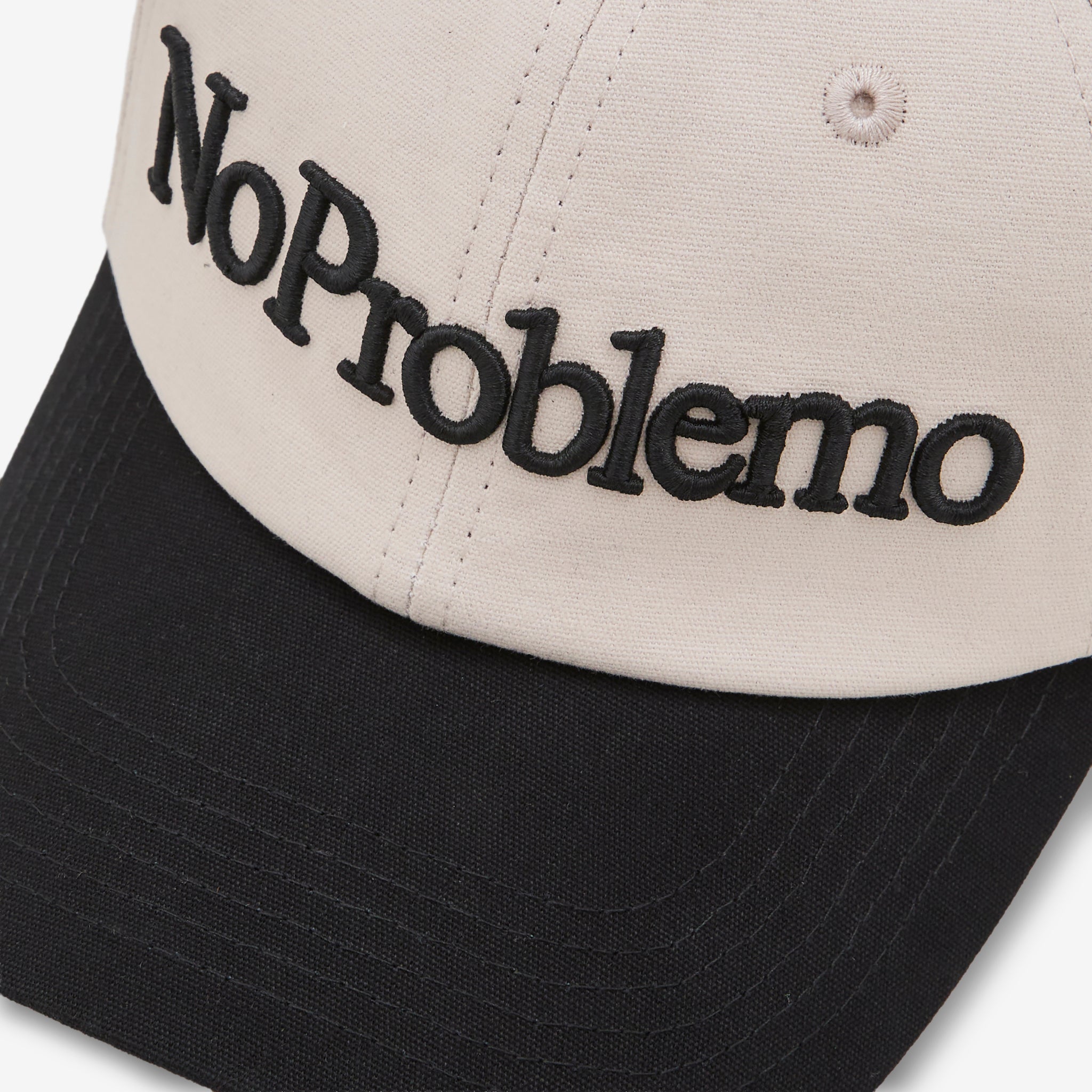 No Problemo Cap in Grey from No Problemo. Structured 6-panel cap with embroidered ventilating eyelets and adjustable snapback closure. Crafted from a durable cotton fabric and finished with embroidered branding at the front and back.