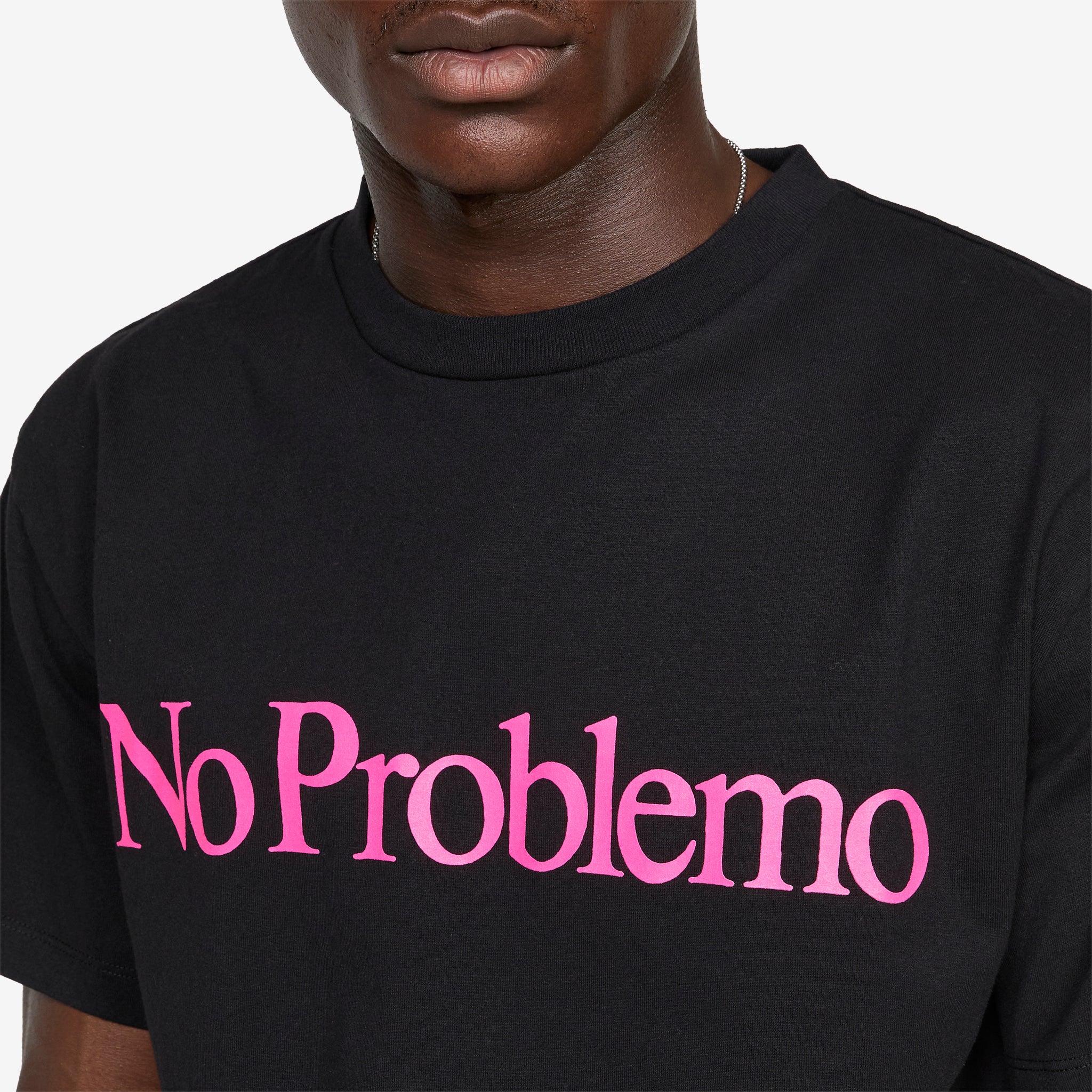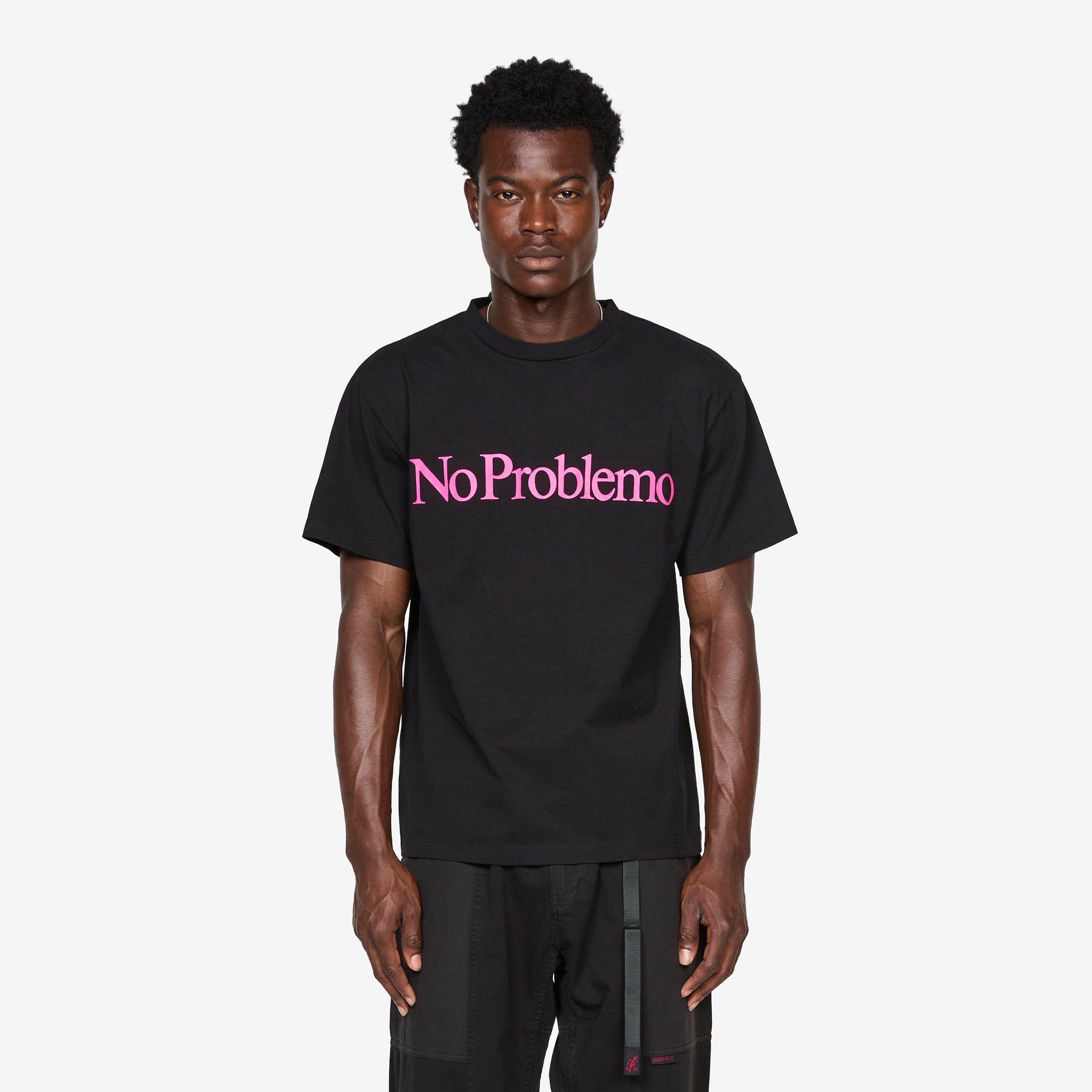 No Problemo T-Shirt in Black from No Problemo. Relaxed fit t-shirt with a ribbed crew neckline. Crafted from 220gsm heavyweight cotton jersey and finished with a printed graphic across the front.