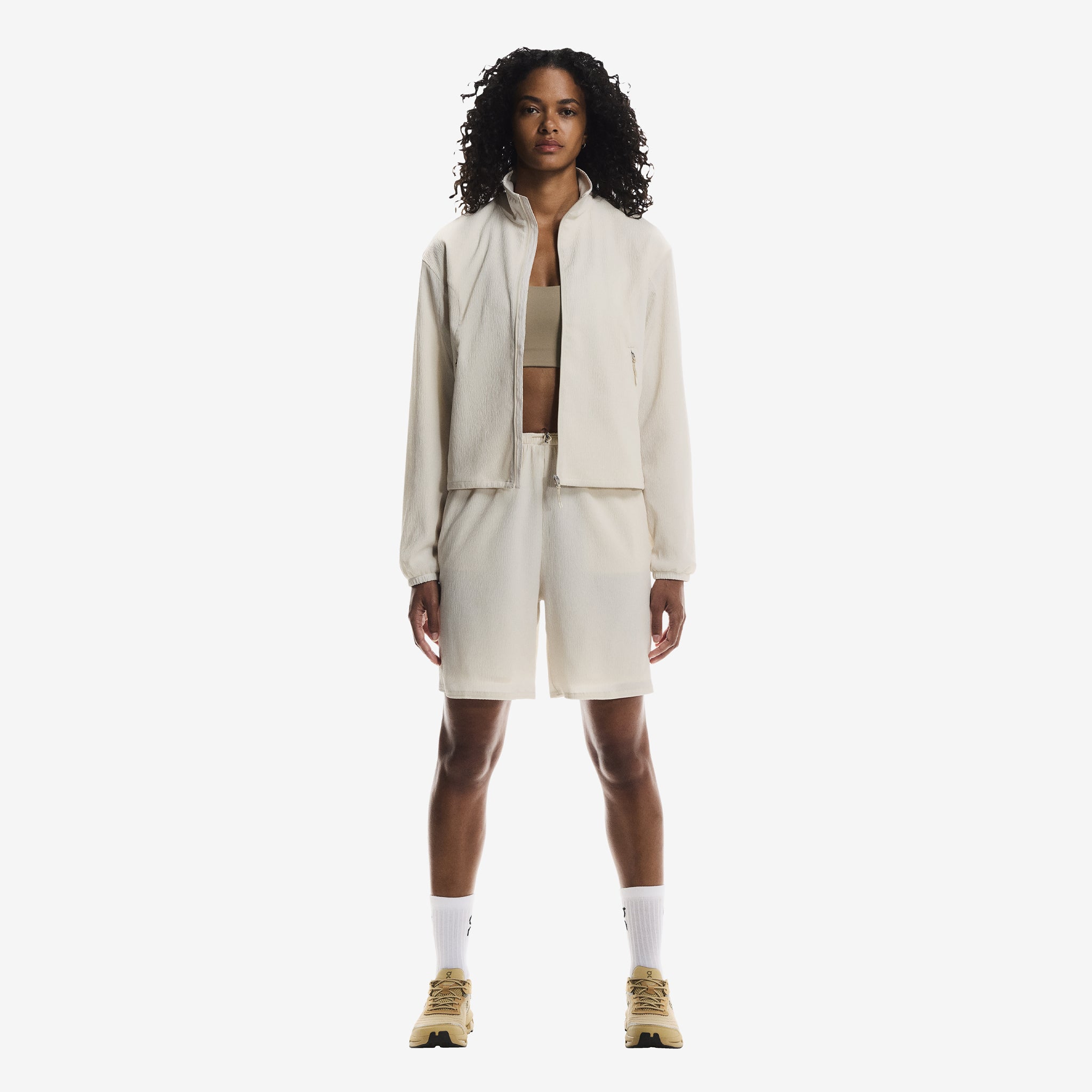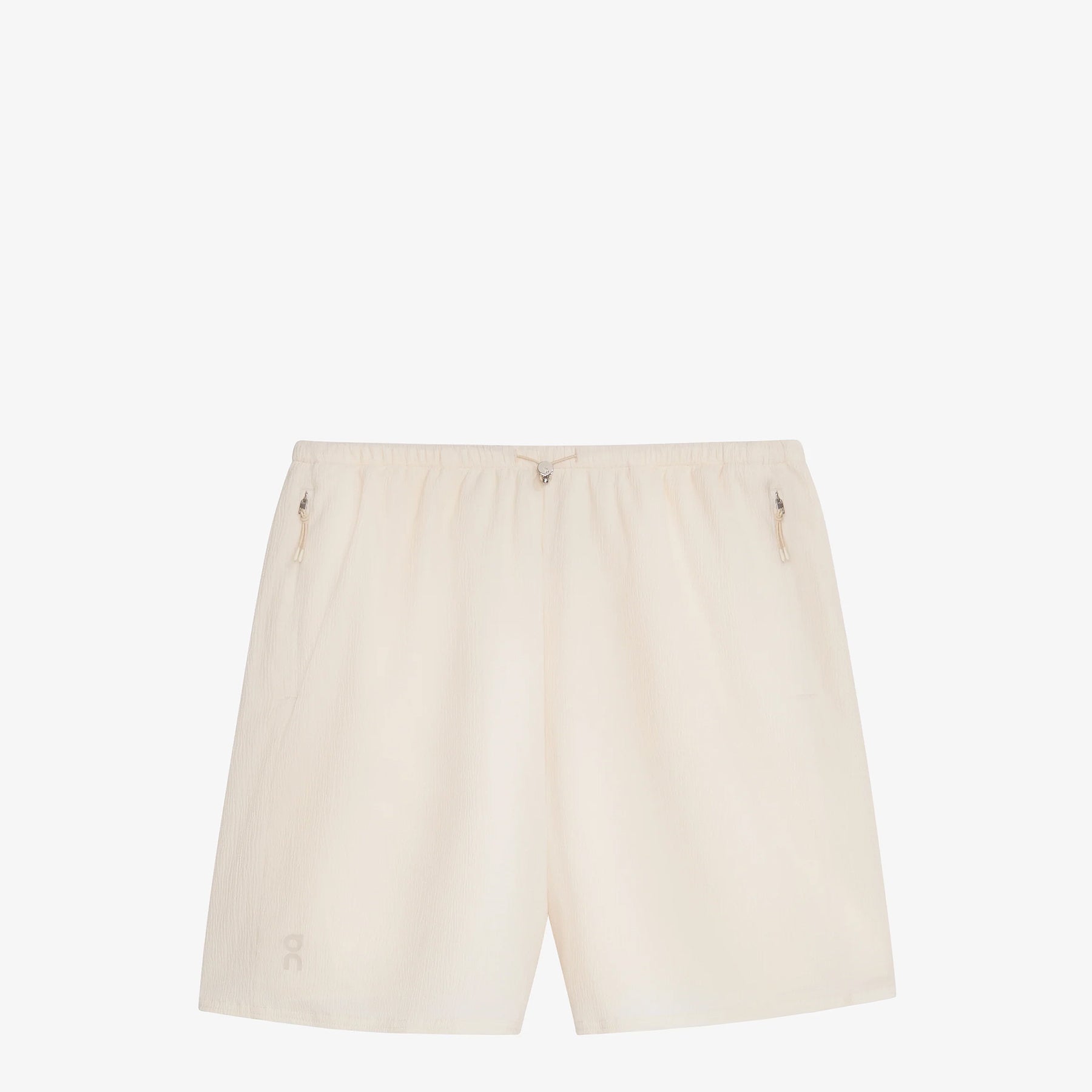Women's Track Shorts in Cream from On. Regular fit shorts with a toggle-adjustable elasticated waistband and discreet zip-closure side pockets. Crafted from an ultra-lightweight performance fabric with mesh lining for comfort. Finished with printed tonal branding at the right hem.