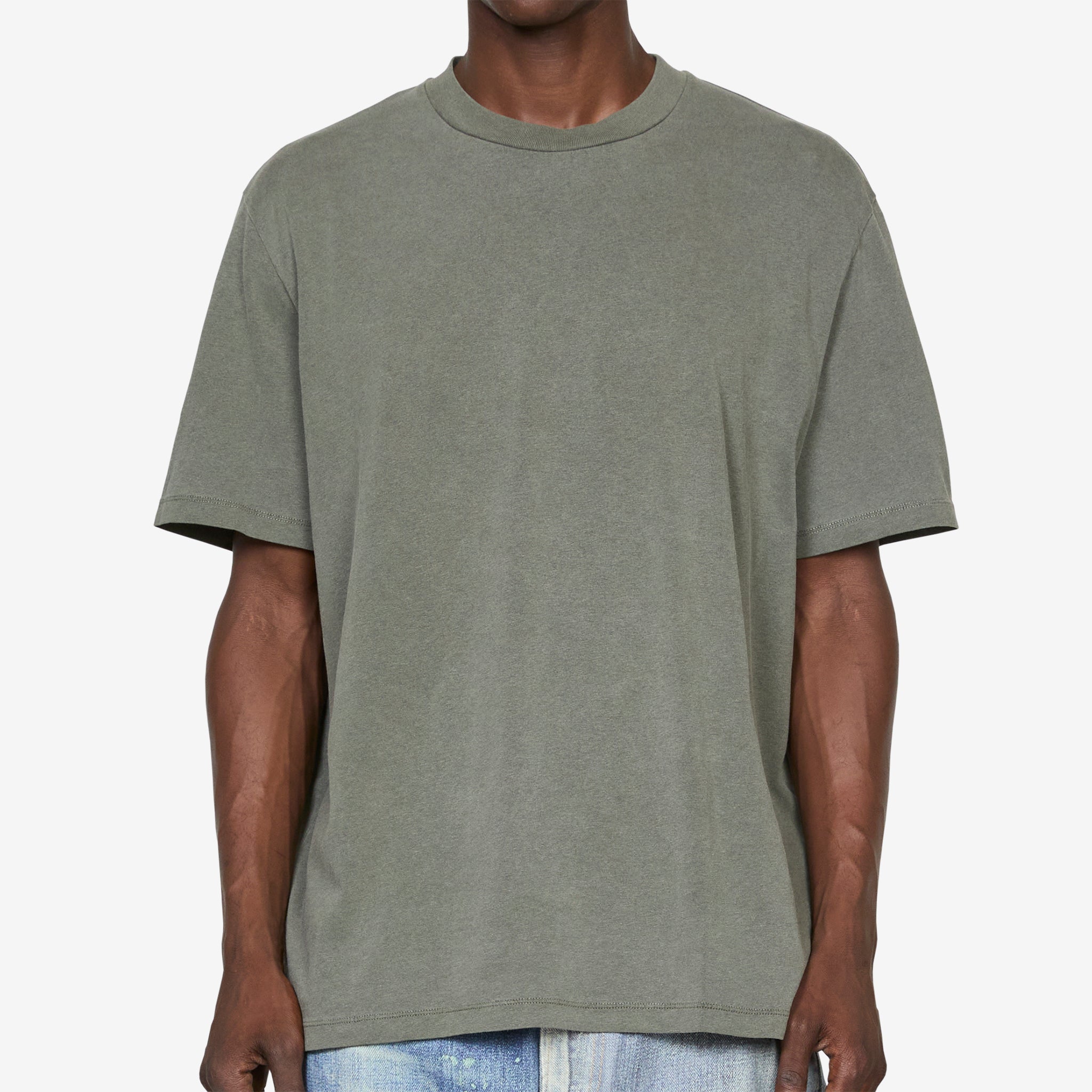 Box T-Shirt in Worn Olive Legacy Jersey from Our Legacy. Wide, boxy fit t-shirt with a fine rib crew neckline. Crafted from a piece-dyed Portuguese cotton jersey in a fade-out finish.