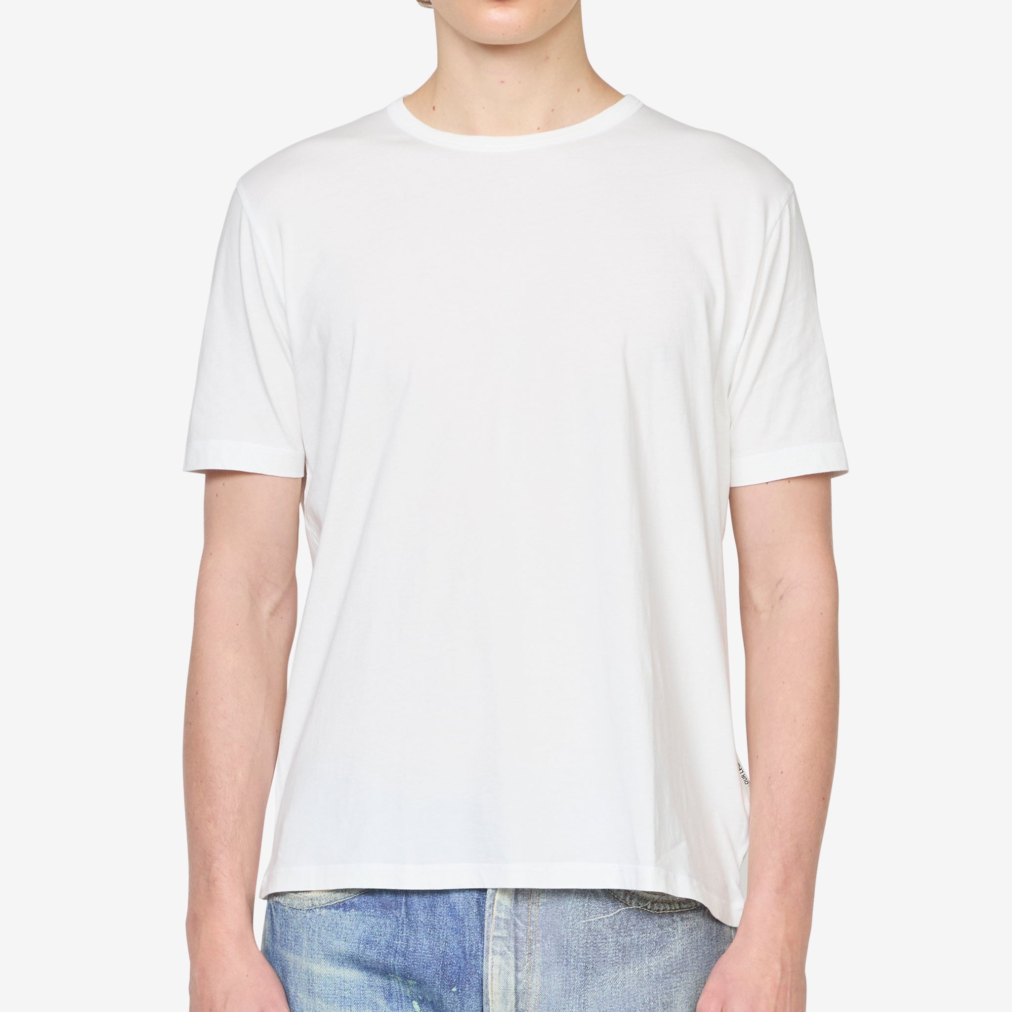 New Box T-Shirt in White Clean Jersey from Our Legacy. Wide cut t-shirt with a boxy silhouette, fine rib crew neckline and overlocked shoulder seams. Crafted from premium Portuguese cotton jersey and finished with an OUR LEGACY logo tab.