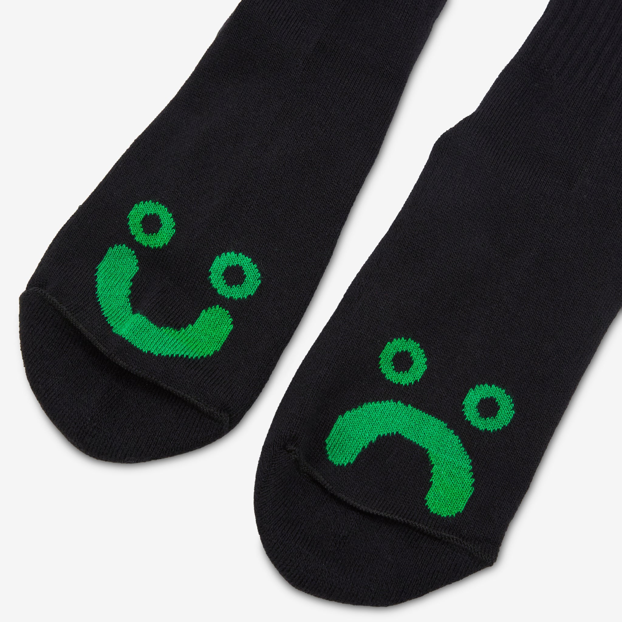 Happy Sad Rib Socks Black | Green Front
