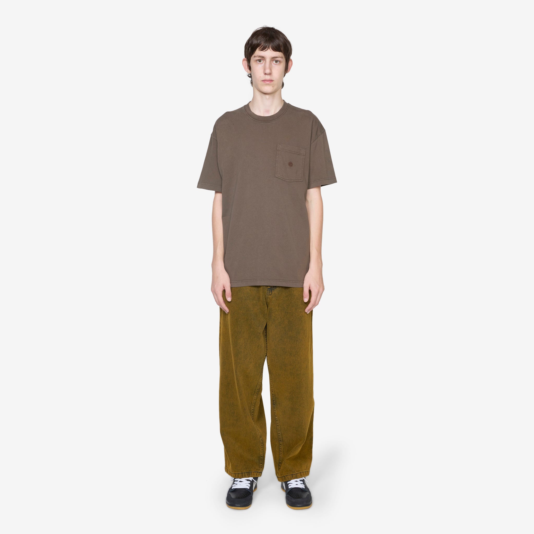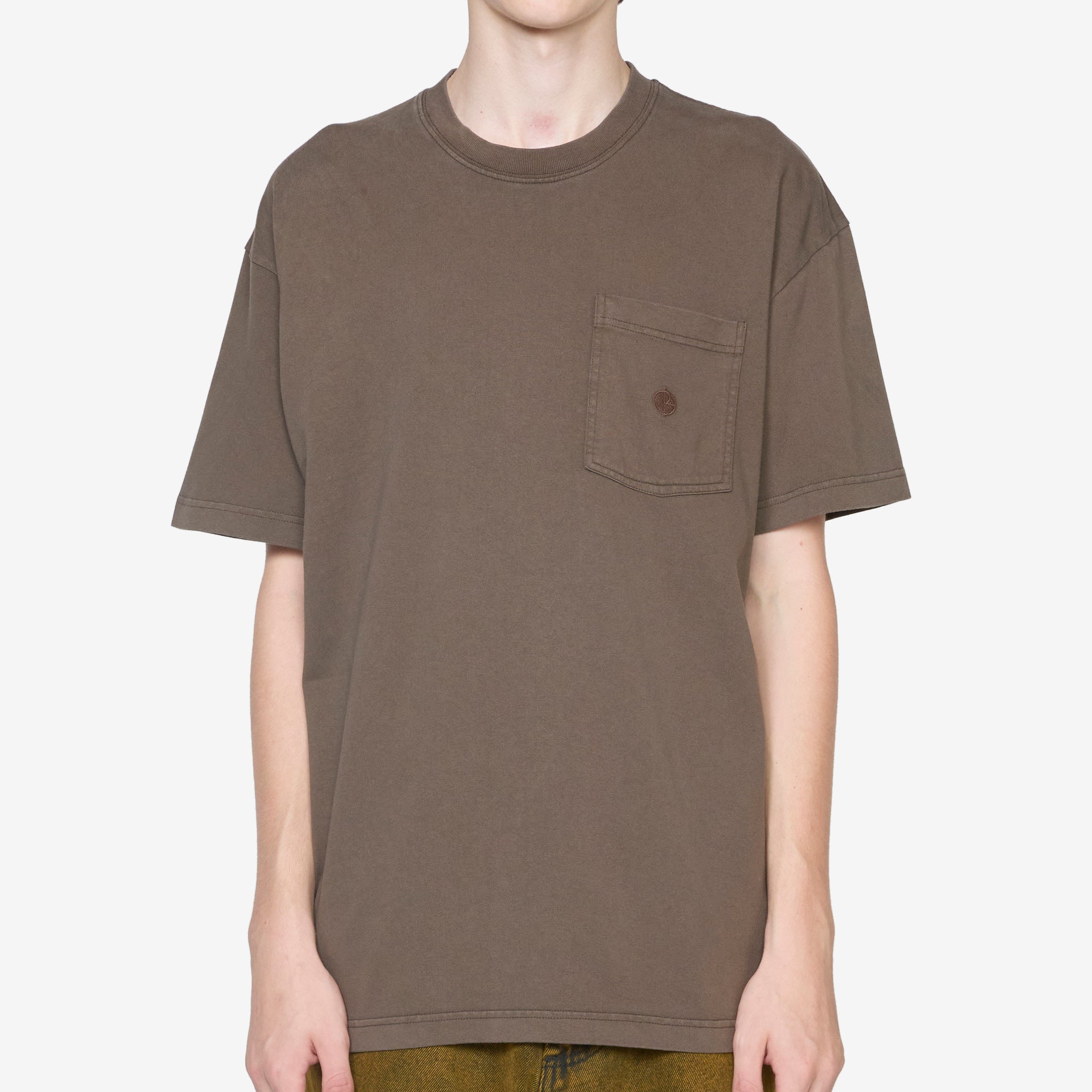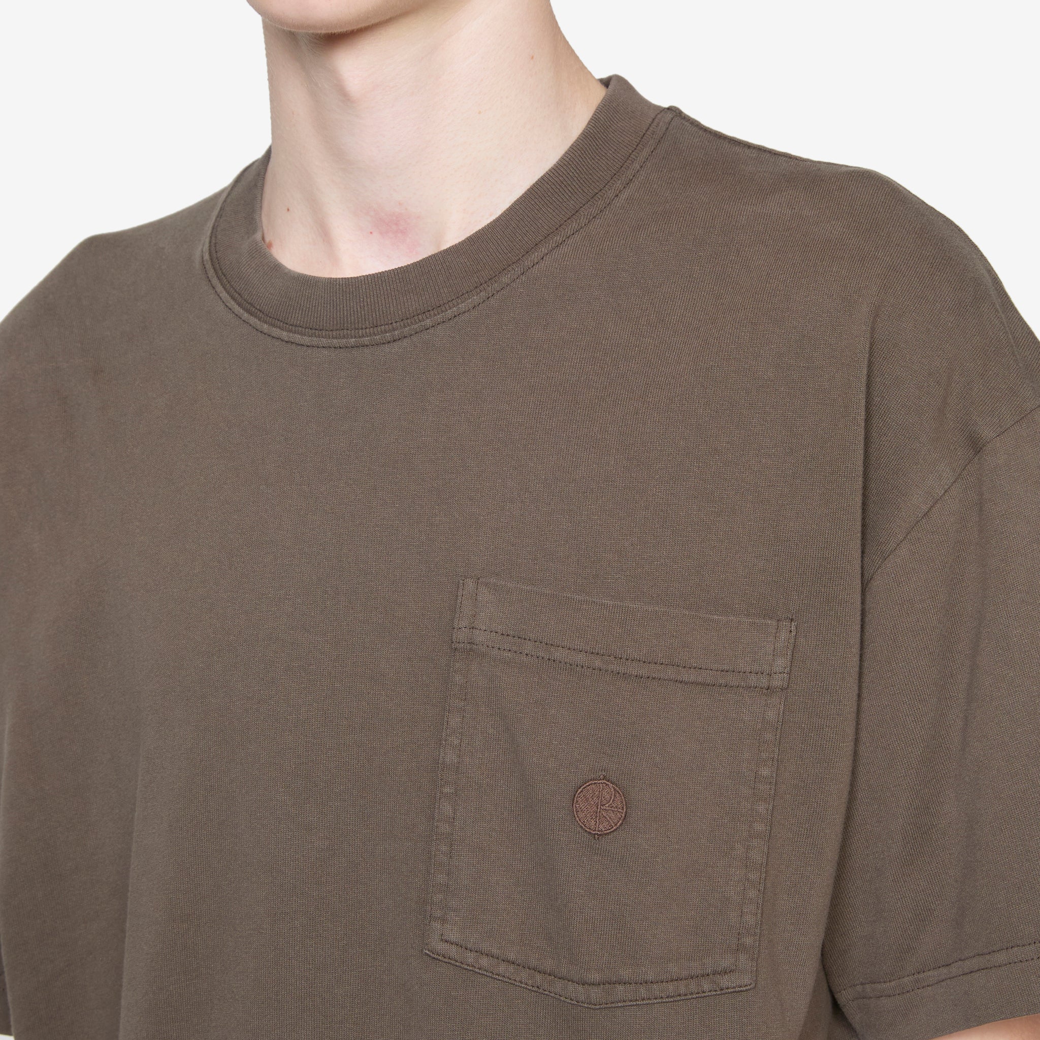 Pocket T-Shirt in Brown from Polar Skate Co. Regular fit t-shirt with a ribbed crew neckline and single chest pocket. Crafted from a garment-washed, 240gsm cotton double jersey. Finished with embroidered branding at the chest pocket.