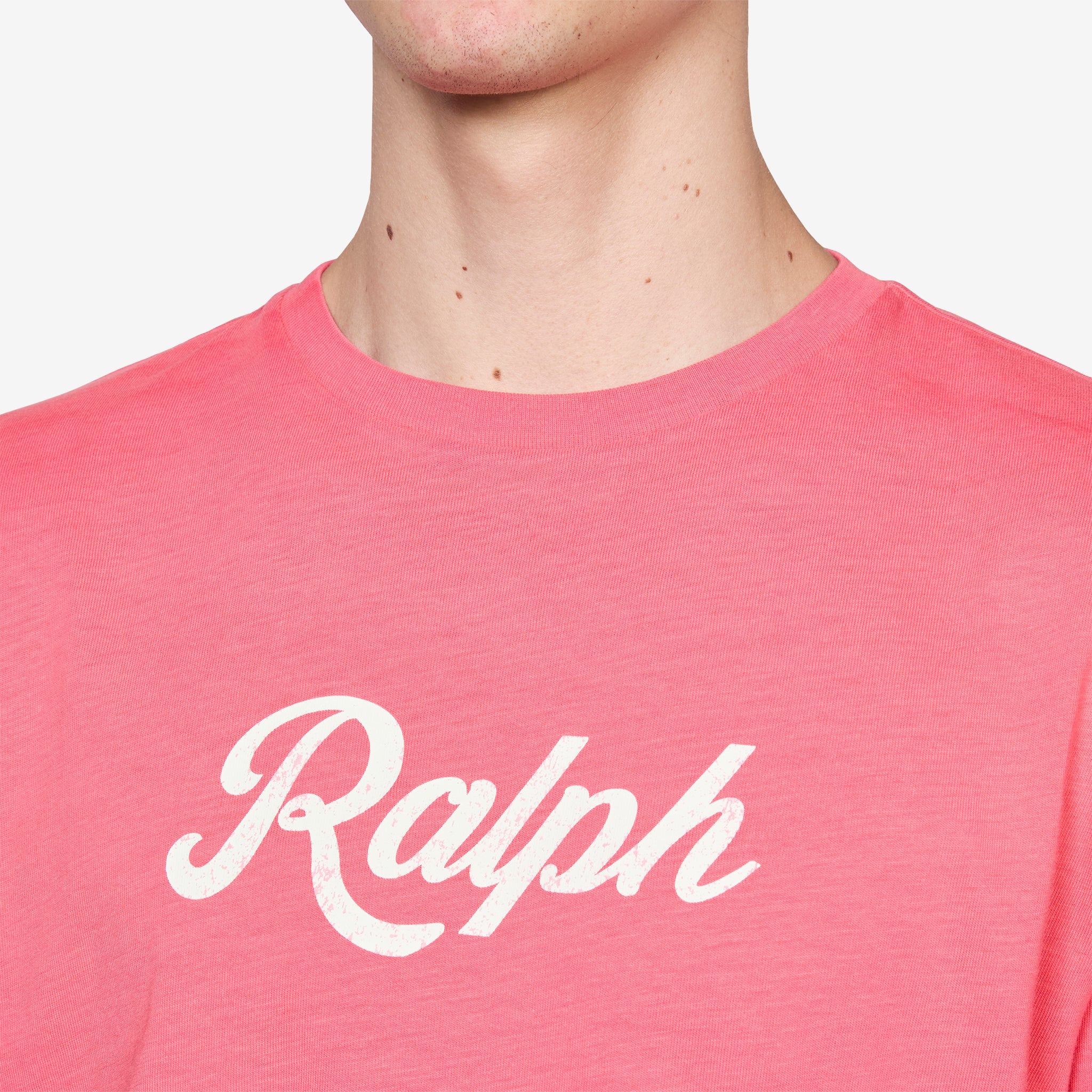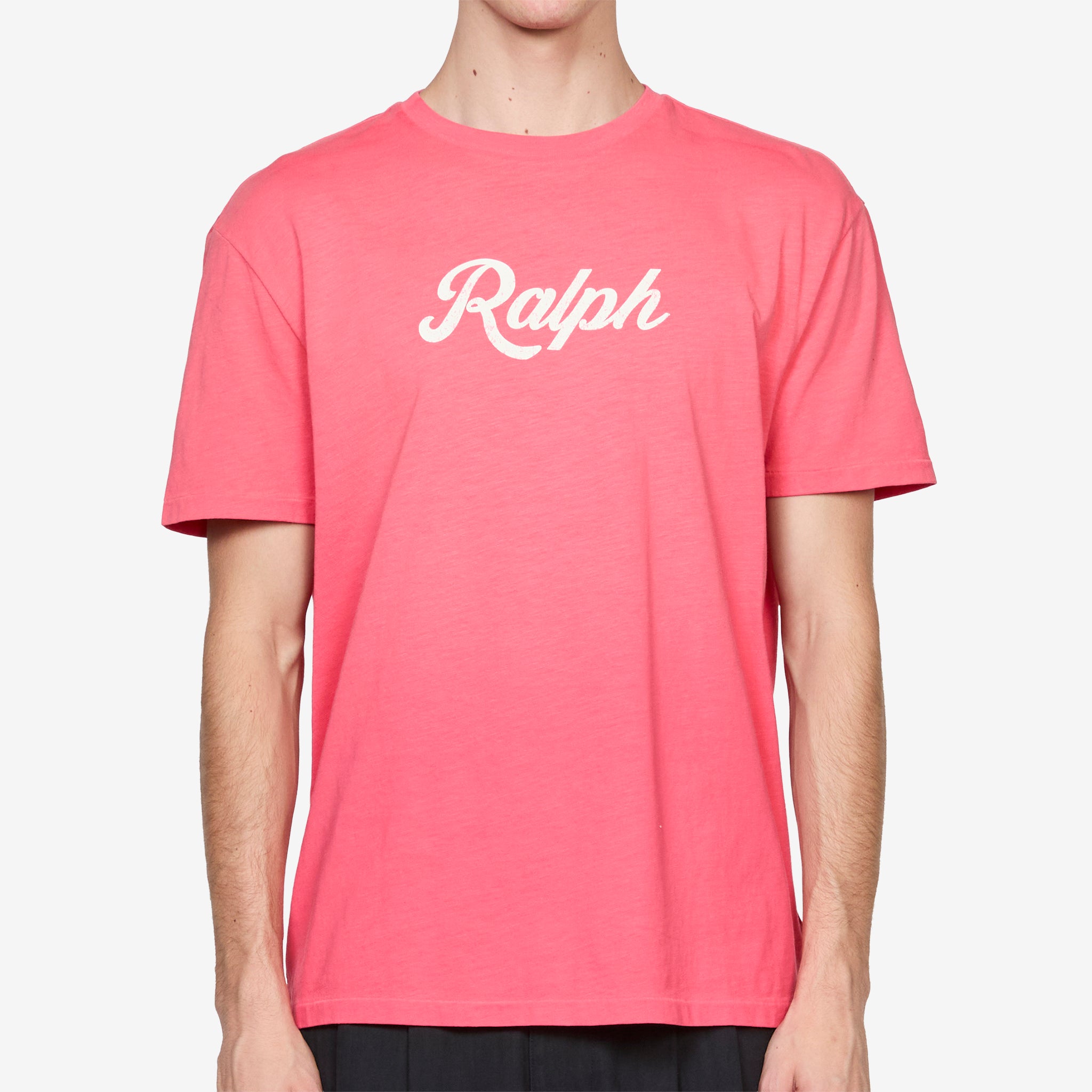 The Ralph T-Shirt Pale Red from Polo Ralph Lauren. Classic crewneck tee in midweight cotton jersey with a soft handle and relaxed feel. Finished with a faded script logo print at the chest for a worn-in look.