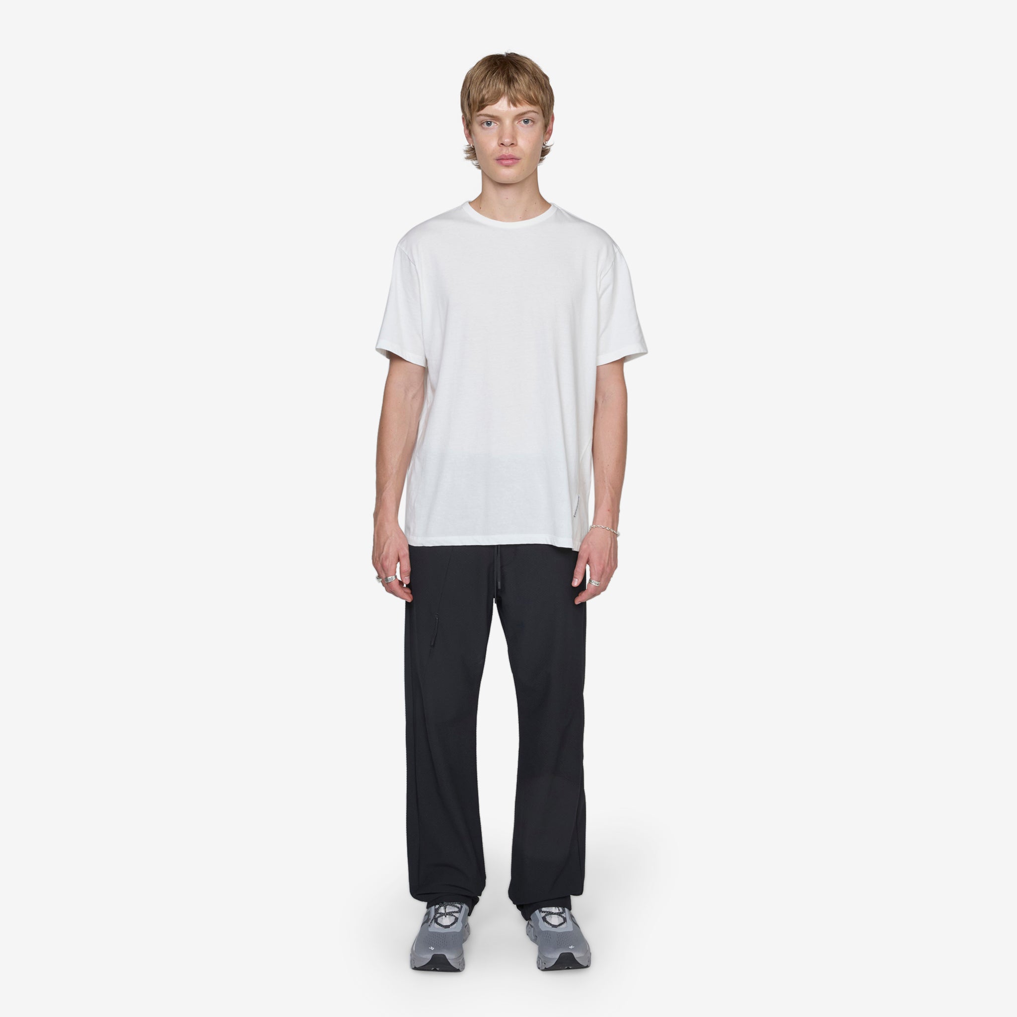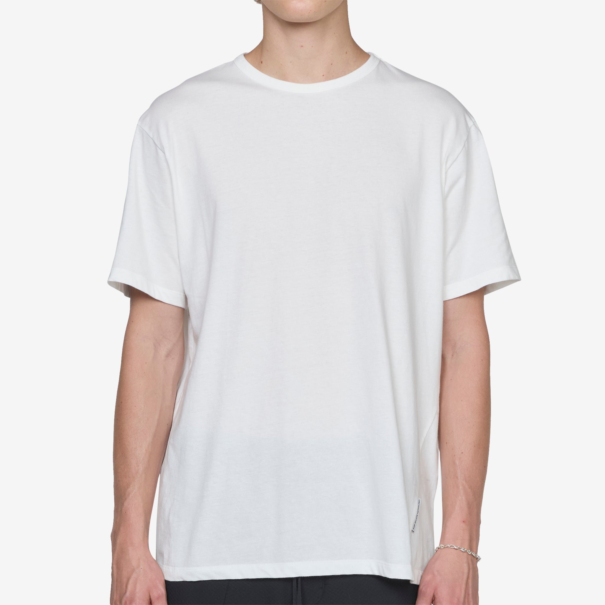 8.0 T-Shirt Right in White from Post Archive Faction (PAF). Regular fit t-shirt with a ribbed crew neckline, unique dropped shoulder seams and a twisted asymmetric left side seam. Crafted from premium 30-count stretch cotton and finished with a woven brand label at the twisted side seam.