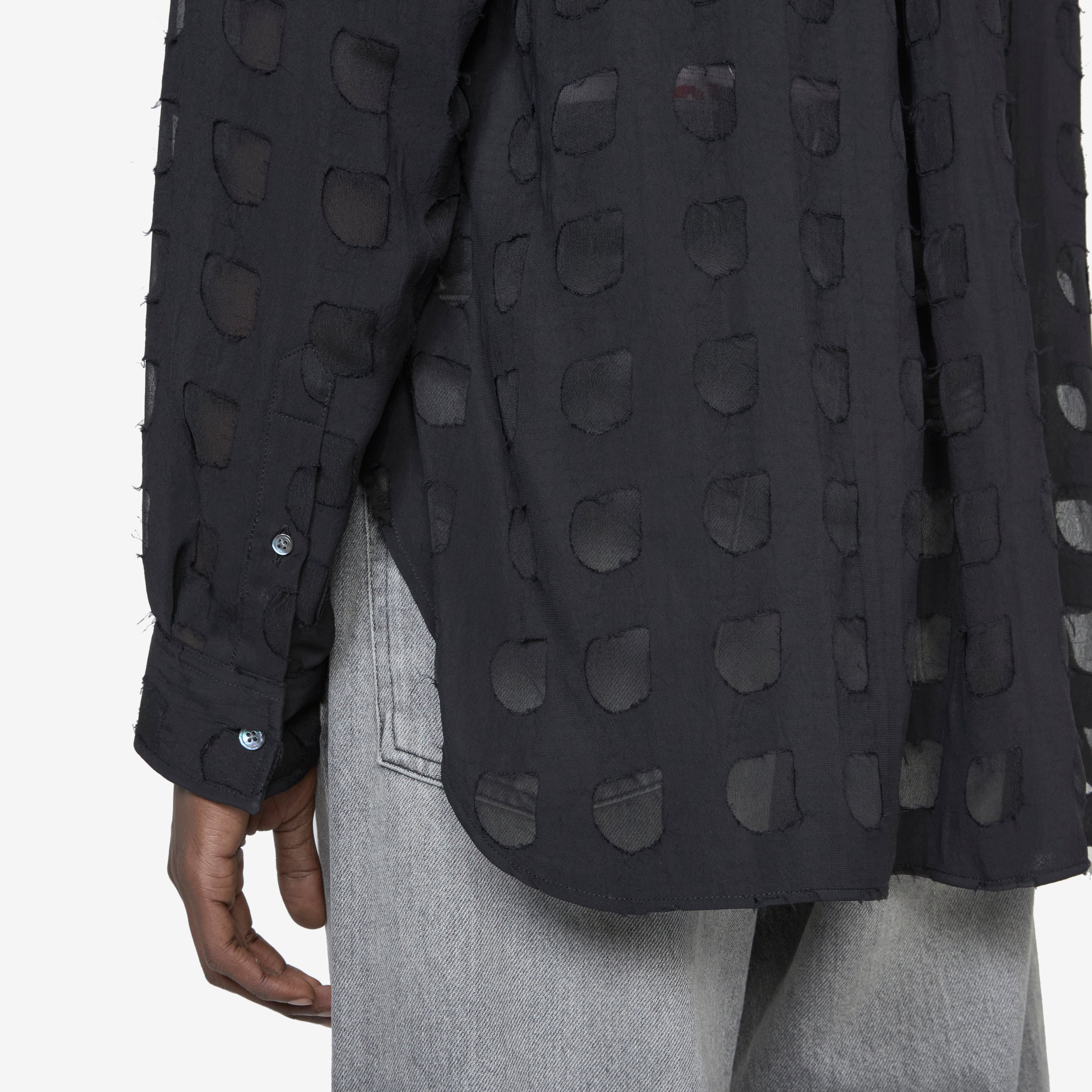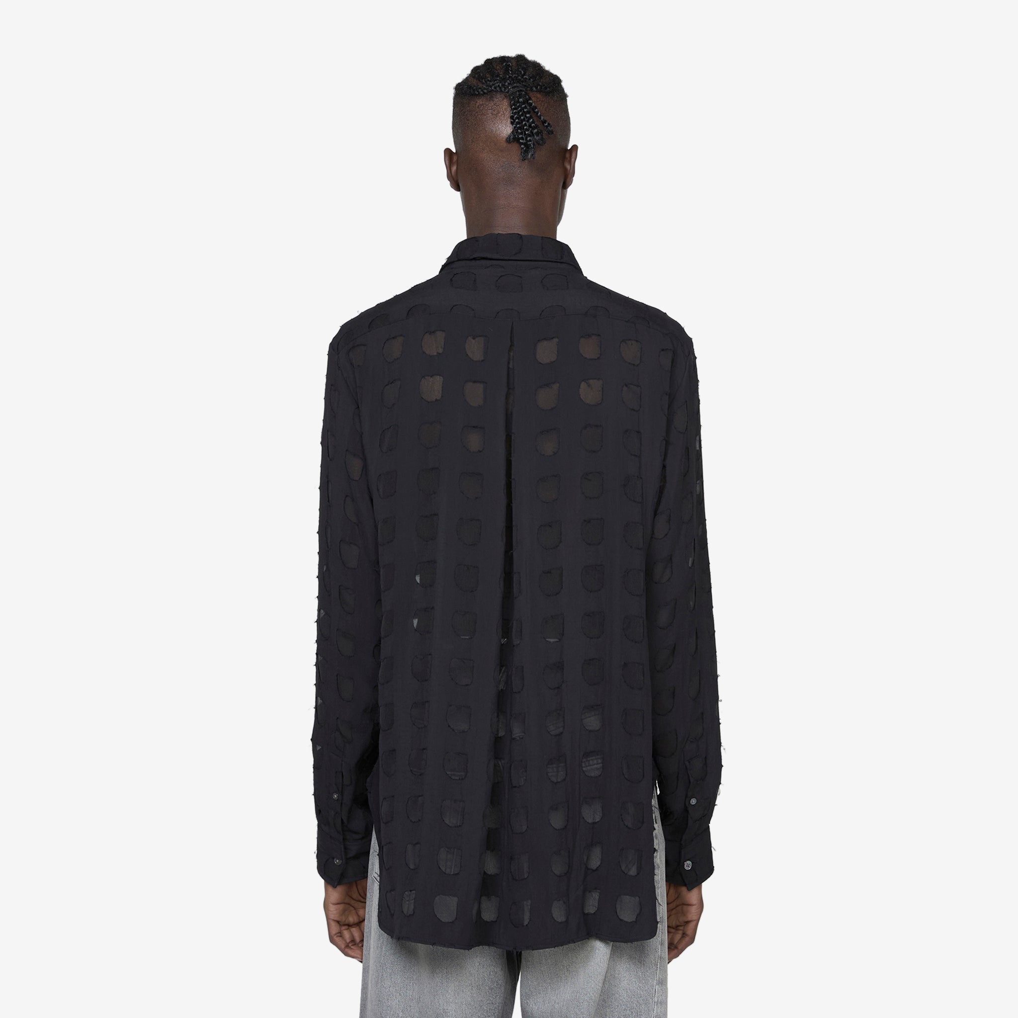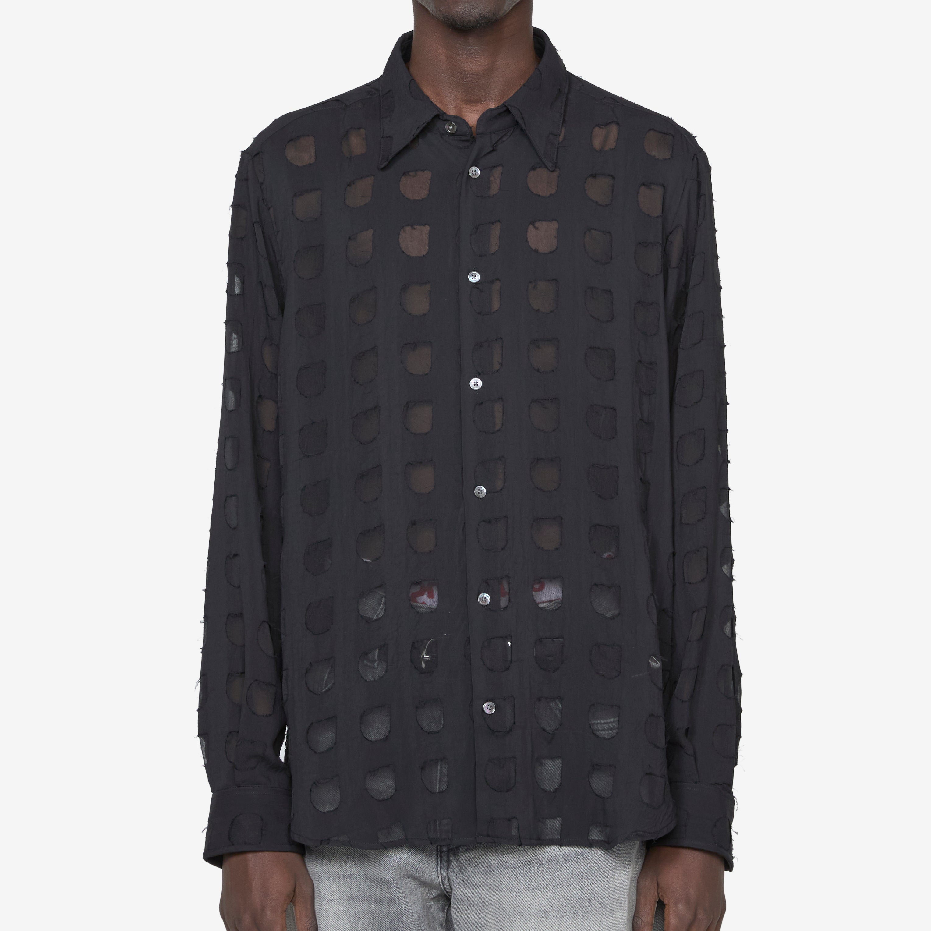 Men's Please Shirt in Black from Sunflower. Relaxed fit longsleeve shirt with an enhanced collar, full button closure and a curved hem. Crafted from Italian sheer cotton.