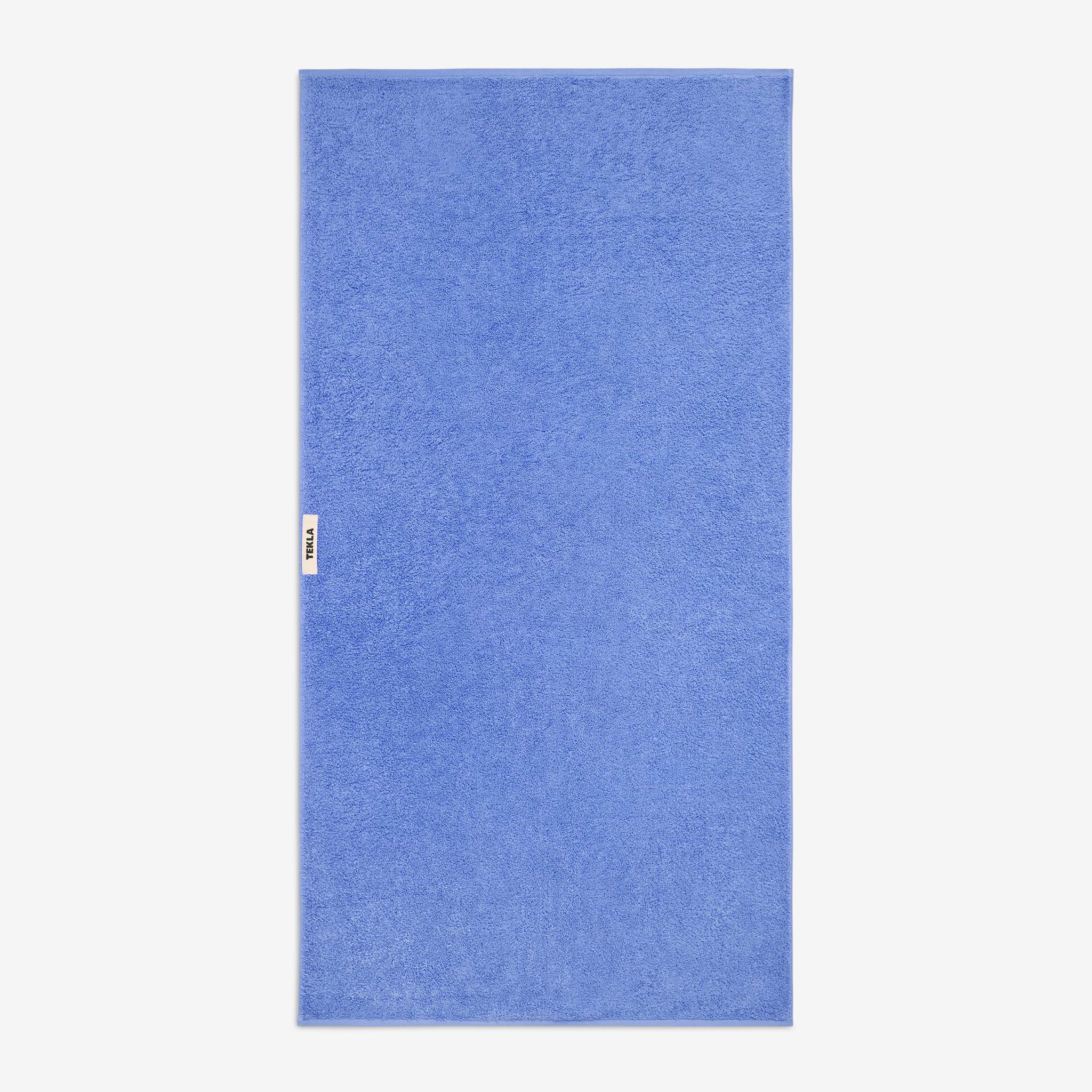 Terry Towel in Clear Blue from Tekla. Gentle on the skin and fast to dry, these towels are constructed with extra-long yarns which are extra-combed for a super soft finish. Crafted from a thick, 600 GSM organic cotton terry weave which perfectly balances softness with efficient drying. Finished with closed corner construction and a sturdy hanger loop.