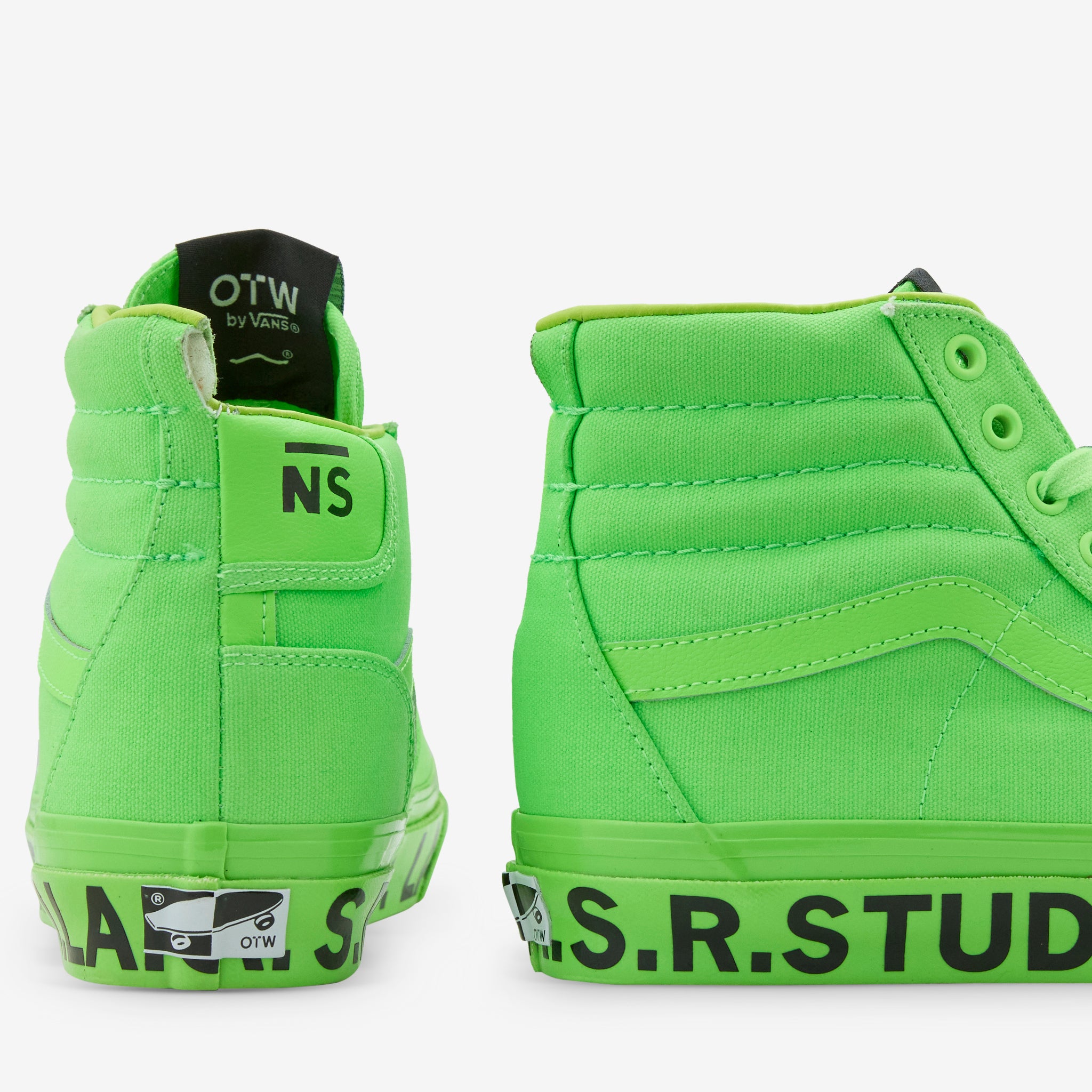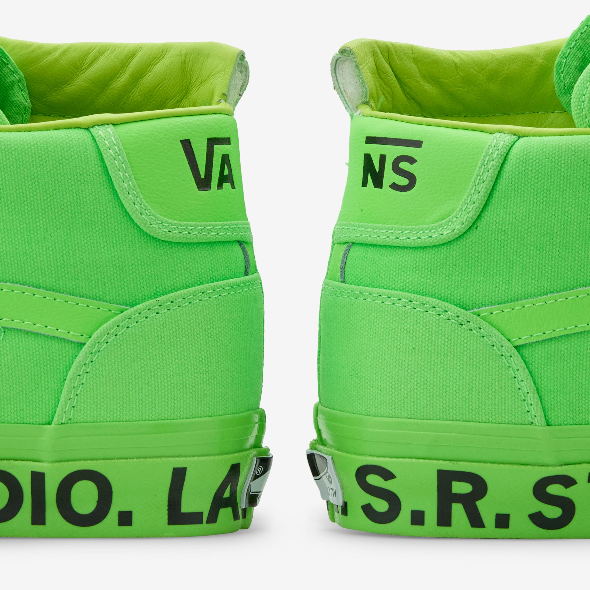 Sterling Ruby collaborates with Vans on the Clash The Wall in Green Gecko. Pulling from four different Vans silhouettes, this shoe features a leather and synthetic upper in neon green. Features a split quarter and heel and asymmetric collar. Finished with branding on the tongue and sole.