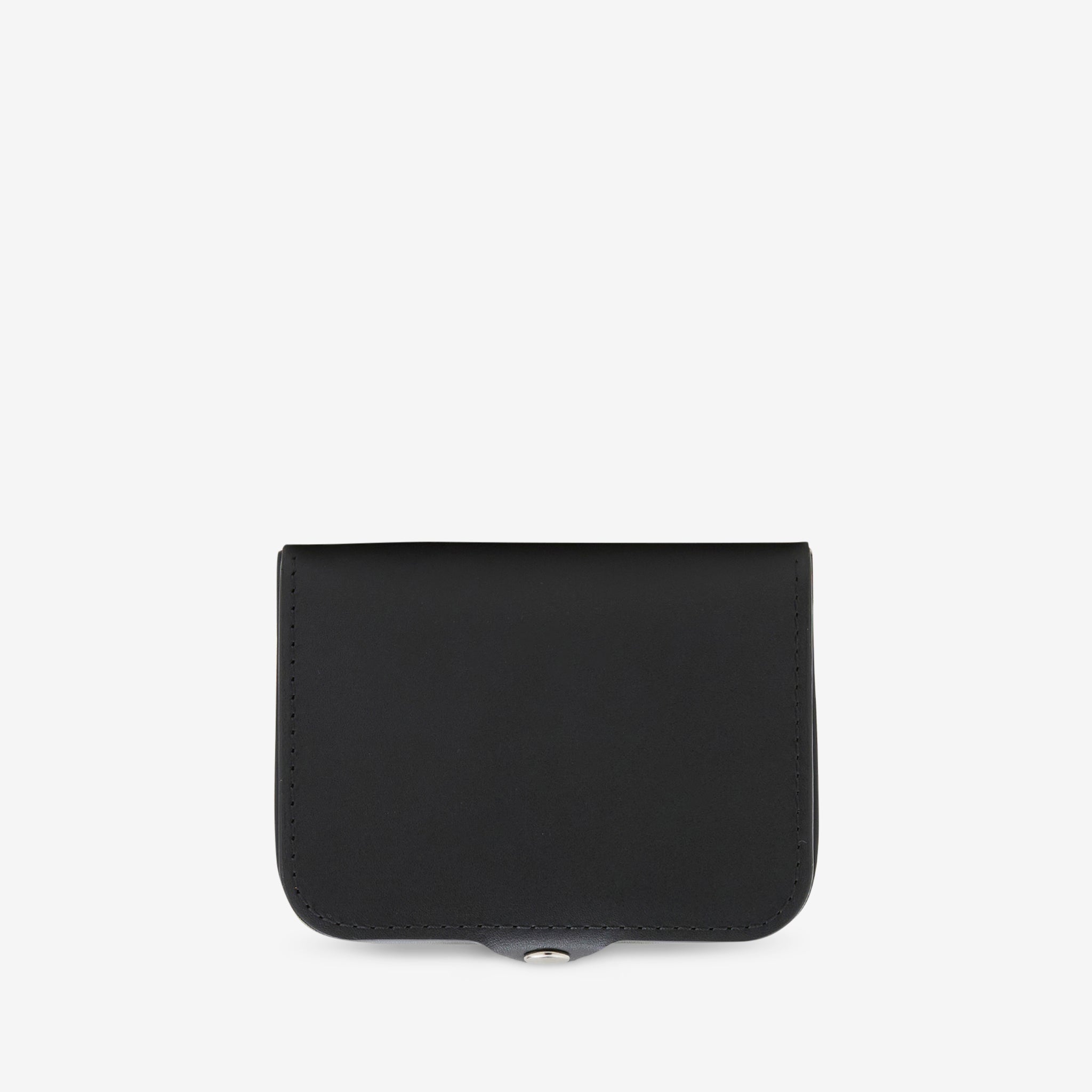 Josh Coin Purse in Black from A.P.C. Crafted from vegetable-tanned smooth cowhide leather moulded using traditional processes. Features rounded corners, flap closure contrasting topstitched edges. Dual purpose with a coin pocket on the top with a cardholder below.