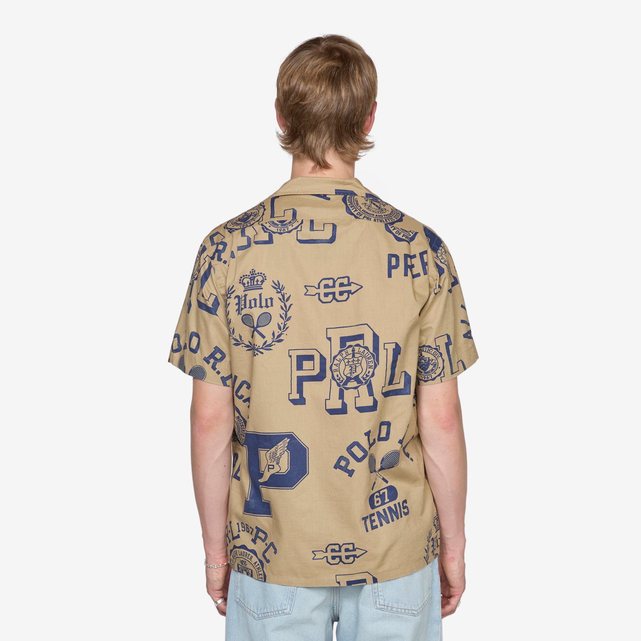 Classic Fit Cotton-Linen Camp Shirt in Polo Athletics Toss from Polo Ralph Lauren. Classic fit shirt with a camp collar, full button closure and a pleated back yoke. Crafted from a lightweight cotton blend in an all-over athletic-inspired emblem print. Finished with a single patch pocket at the chest.