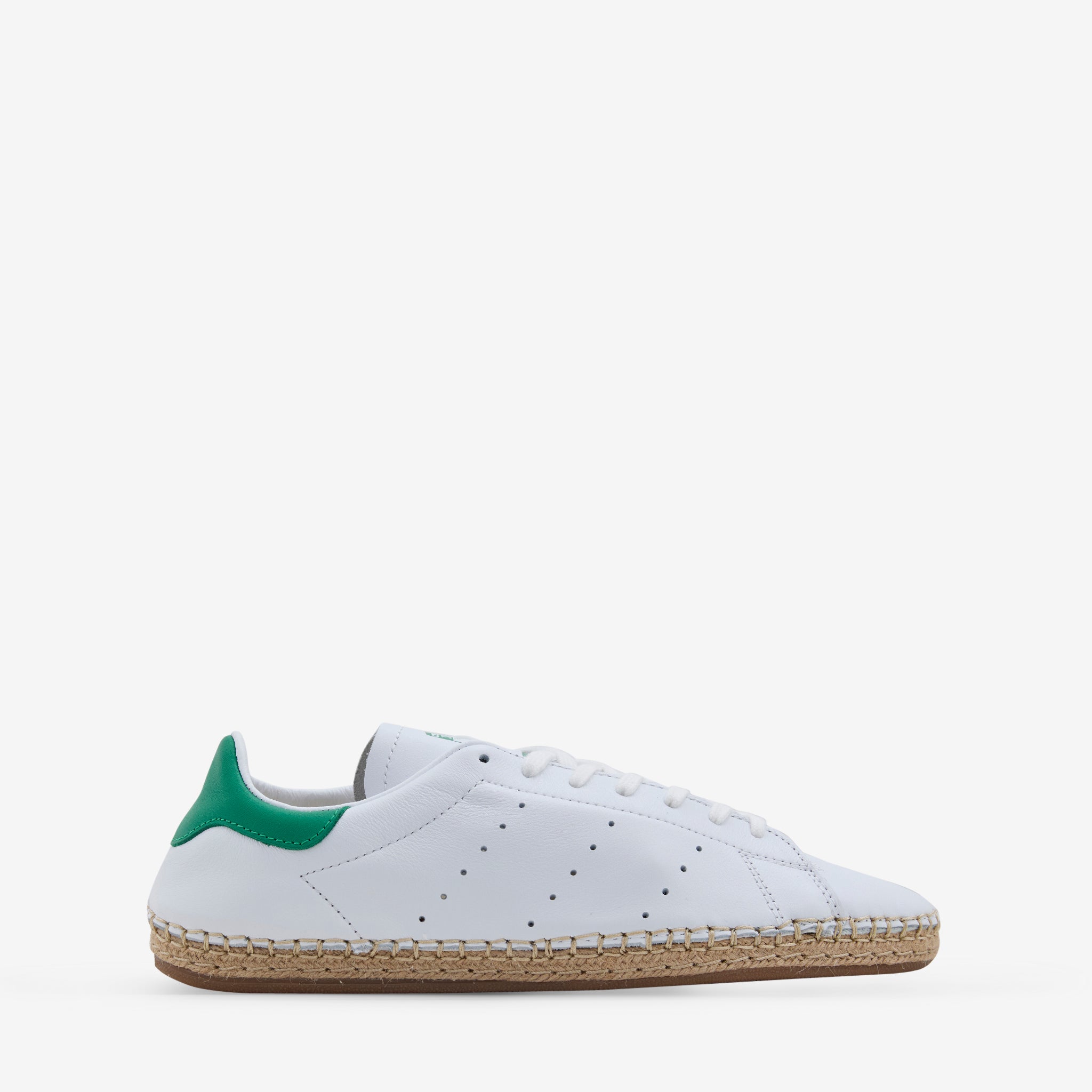 CLOT by Edison Chen collaborates with Adidas Originals on the Stan Smith in Cloud White and Green. Leather upper with signature perforated 3-Stripes and contrast heel tab. Espadrille midsole adds a unique look while the rubber outsole provides signature support and traction. Finished with embroidered tonal collaborative branding.