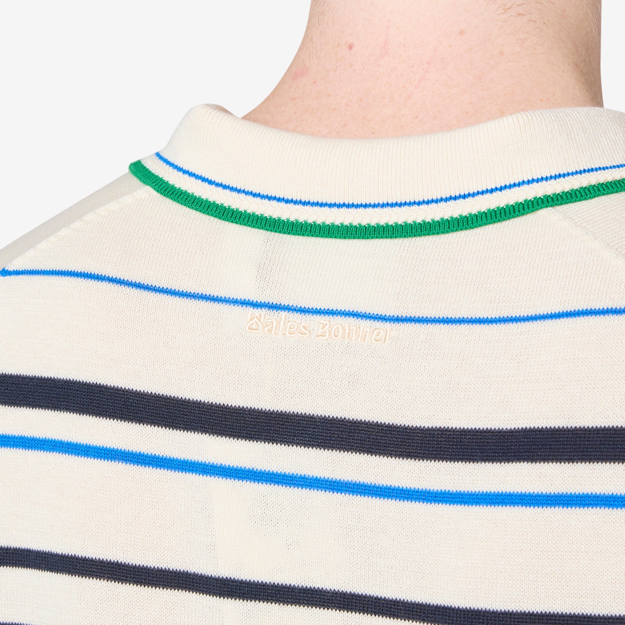 Wales Bonner x Knit Polo Shirt Wonder White | Green | Bluebird