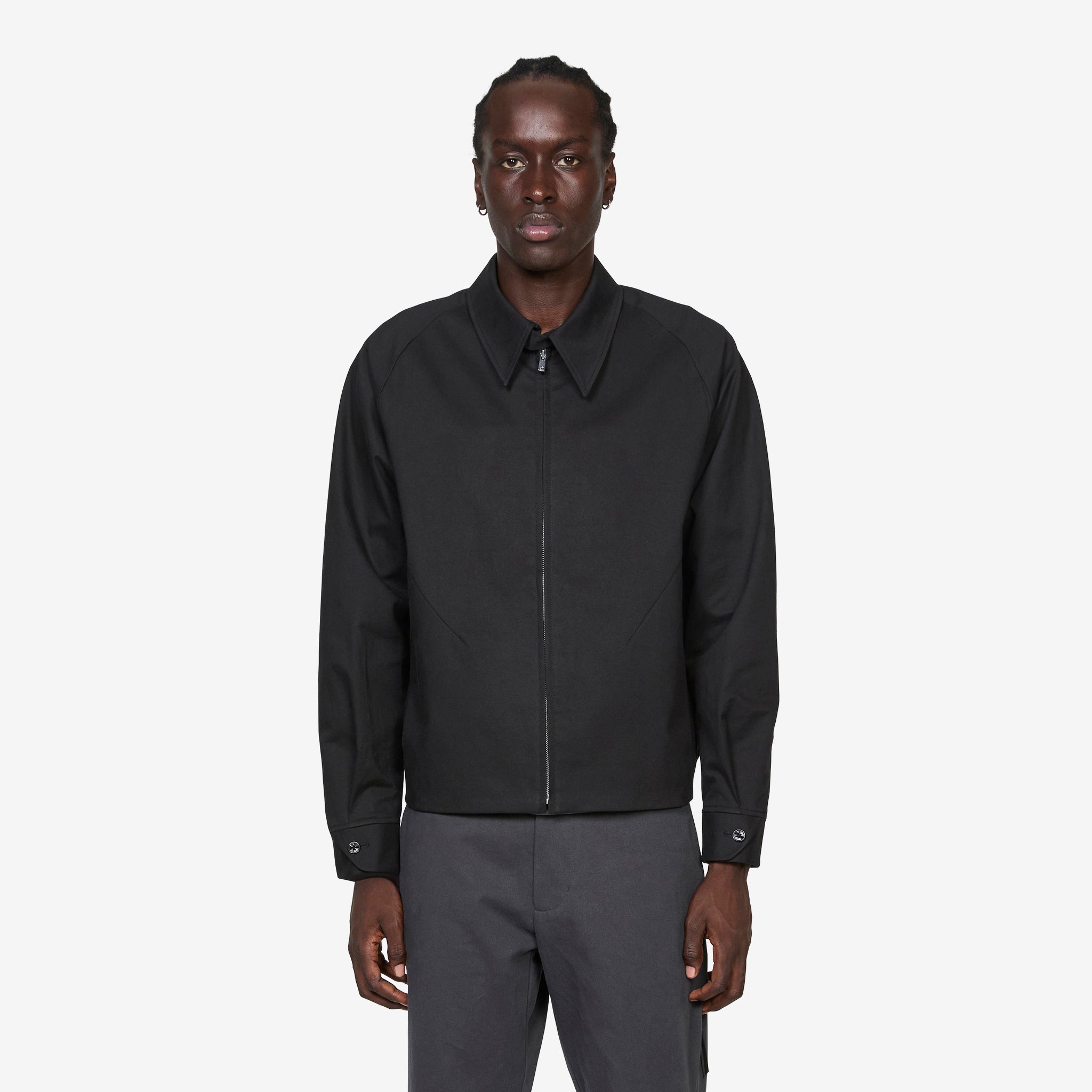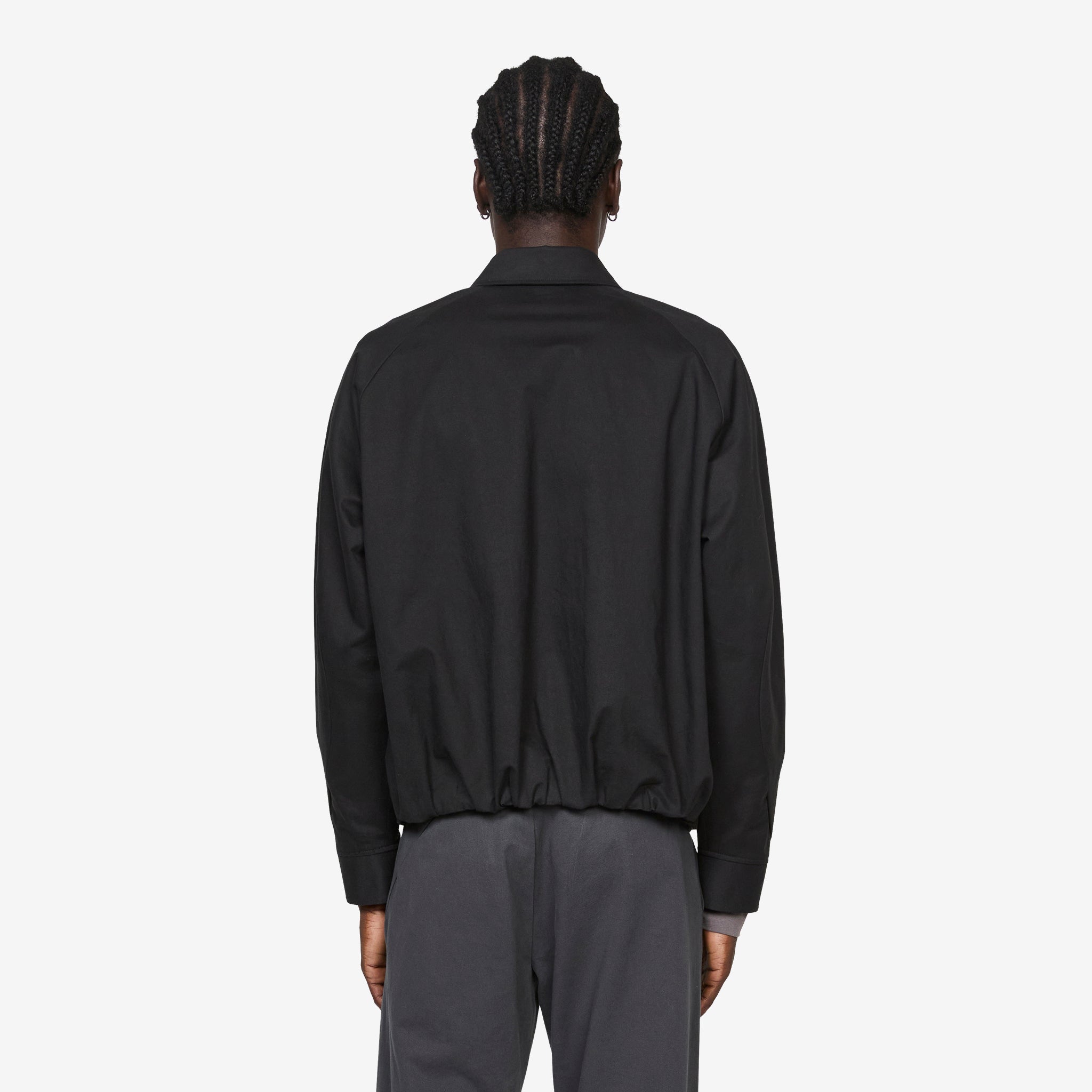 Archive A Jacket in Black from Post Archive Faction (PAF). Regular fit jacket featuring a classic collar with a protective throat latch, button-closure cuffs and YKK EXCELLA® full-zip closure. Crafted from a cotton blend with a soft lining, raglan sleeve construction and rear elasticated waistband. Finished with subtle signature curved seam detailing throughout.