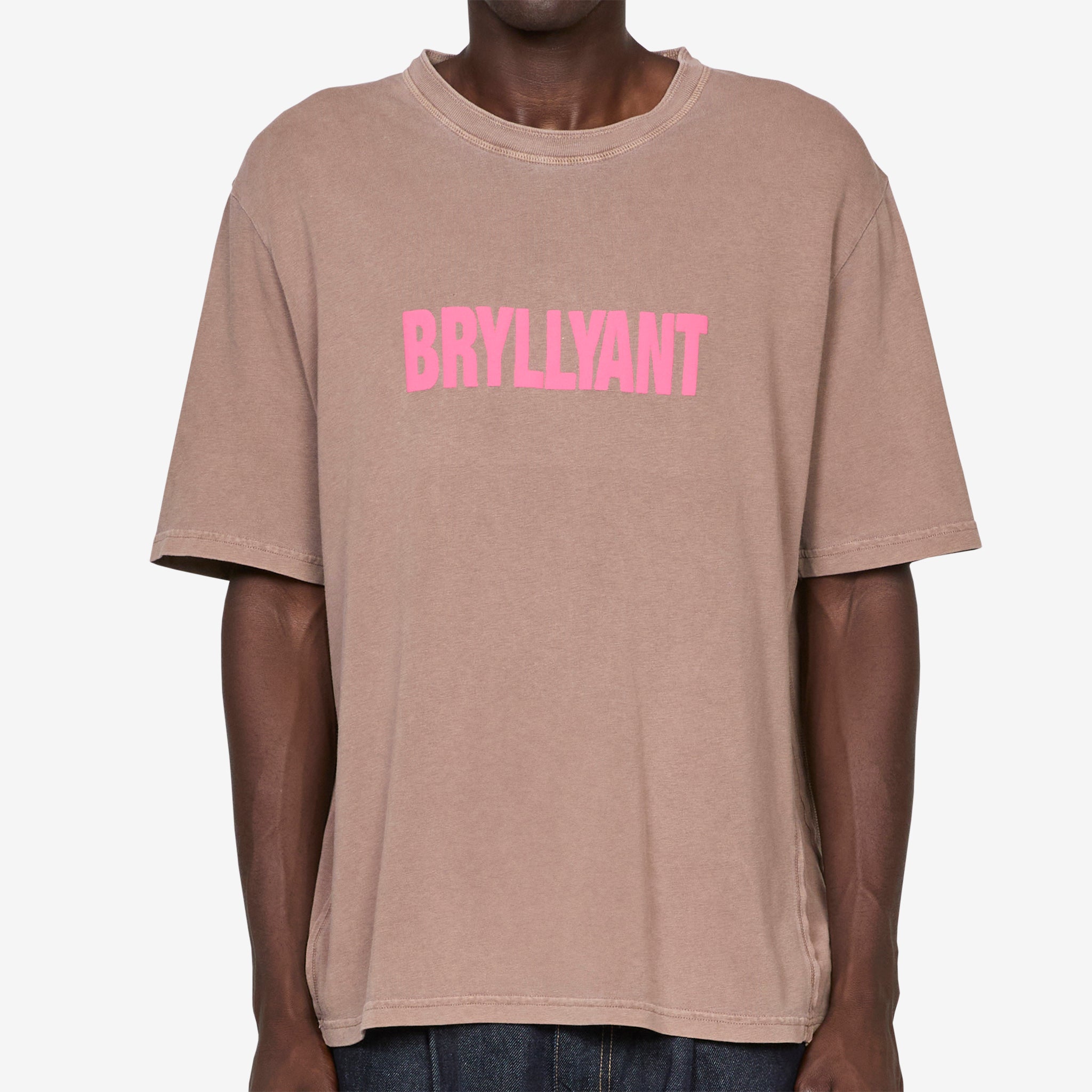 Bryllyant T-Shirt in Soft Brown from ACMH by Magic Castles. Relaxed fit t-shirt with an inserted ribbed crew neckline and twin-needle stitch trims. Crafted from a garment-washed 190gsm single jersey cotton. Finished with puff printed graphics at the front and subtle embroidered details.