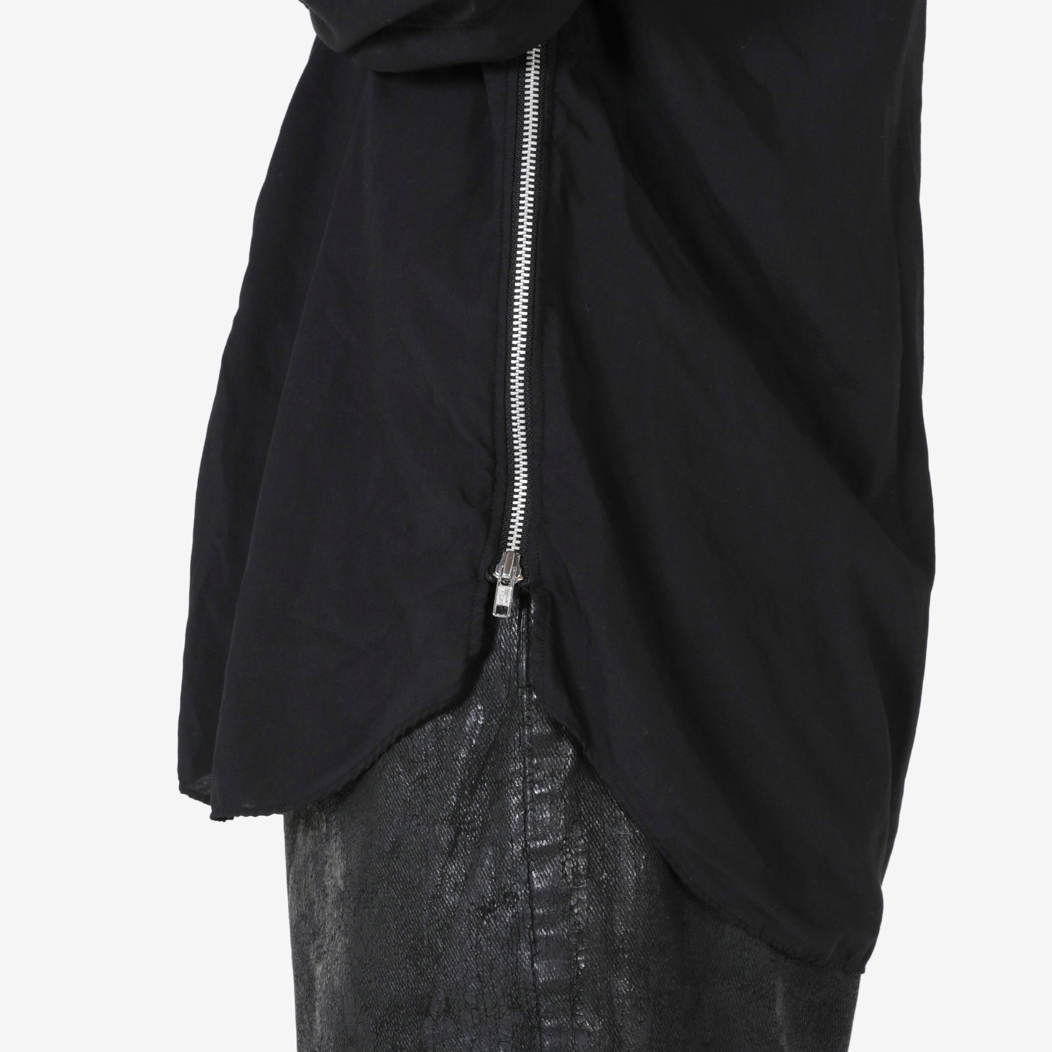 Men's Woven Zipped Shirt from Comme des Garçons SHIRT. Relaxed fit, longsleeve shirt with a curved back hem. Crafted from 100% cotton featuring zipped side panels.