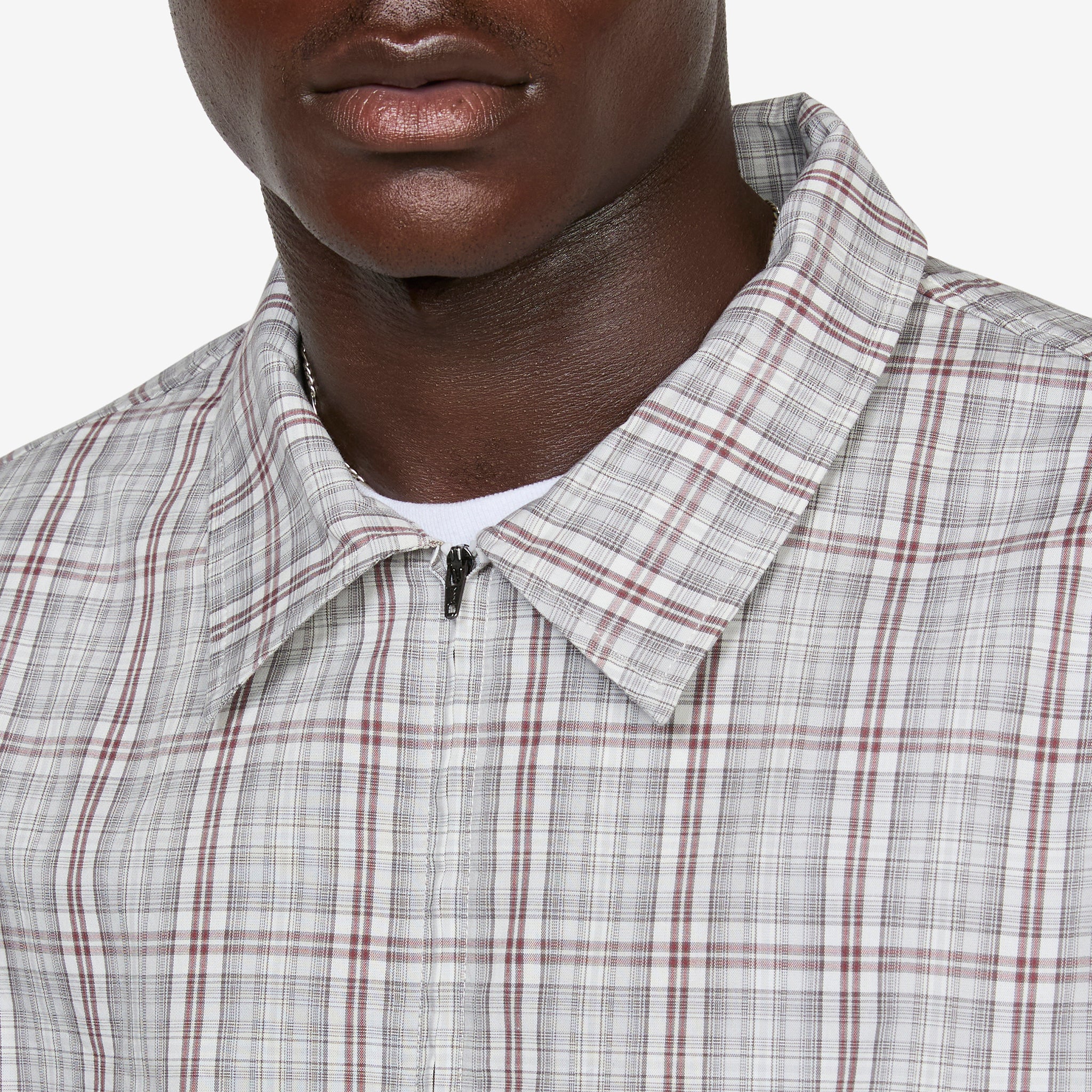 Zip-Up Garage Jacket in Natural from Gramicci. Relaxed fit jacket with a classic collar, full-zip closure, side entry front pockets and button adjustable cuffs. Crafted from high density plaid cotton fabric. Finished with a minimal woven brand label at the the front left pocket.